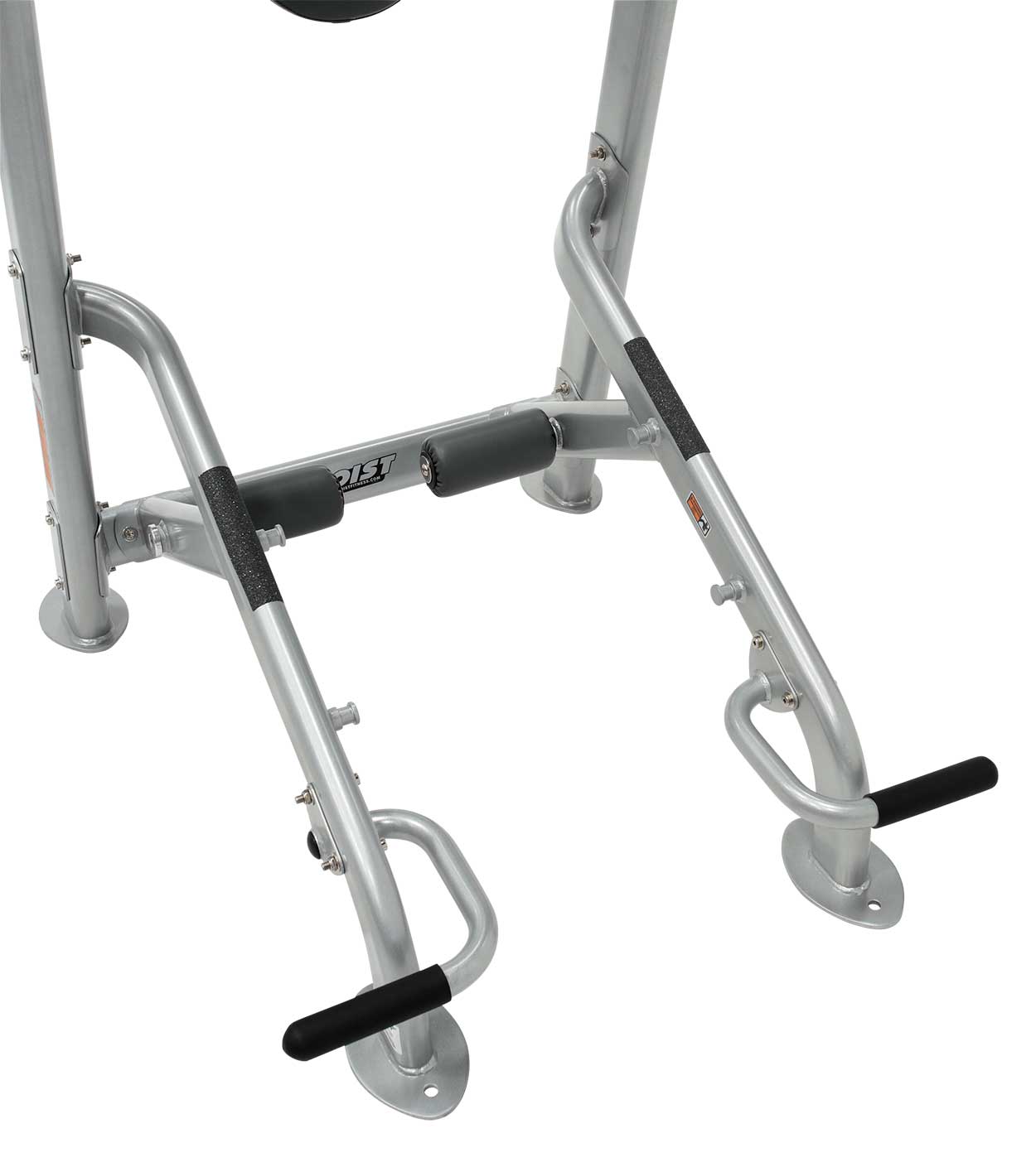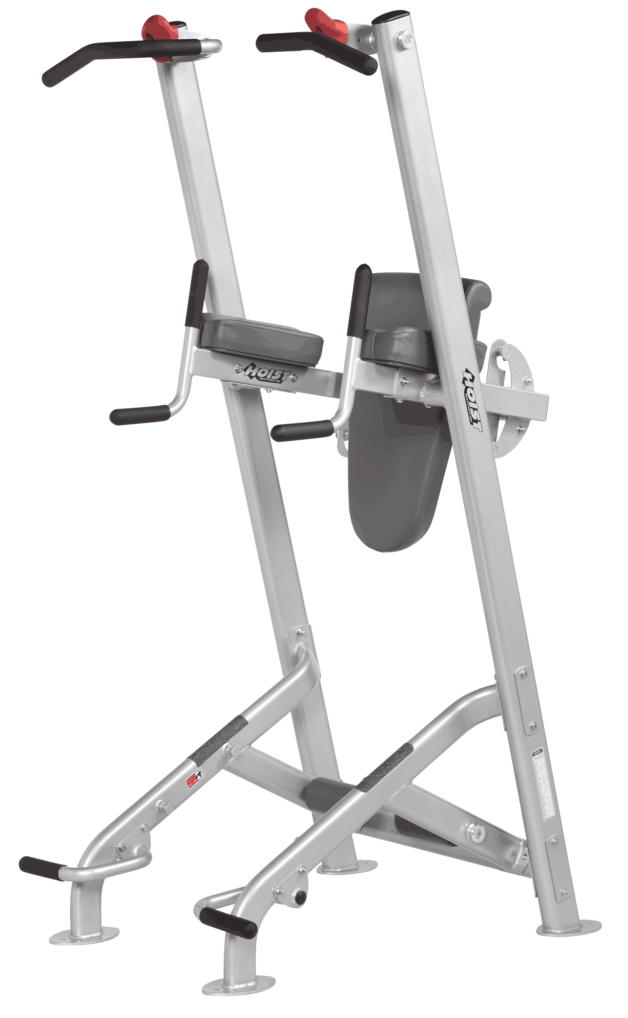 - Dual purpose back pad attaches for both vertical knee raise and sit up exercise positions